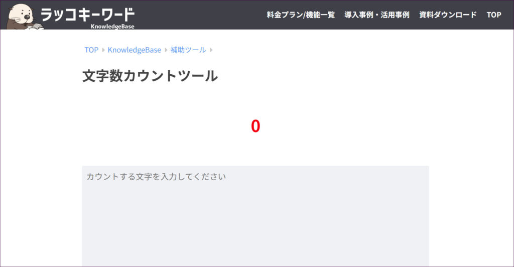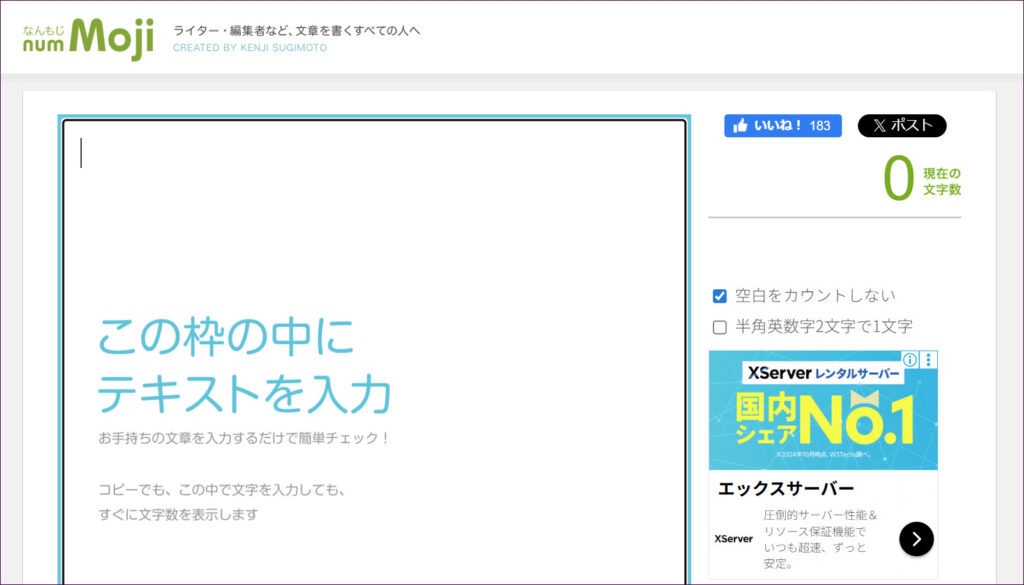 シンプルな画面で、リアルタイムに文字数をカウントしてくれます。