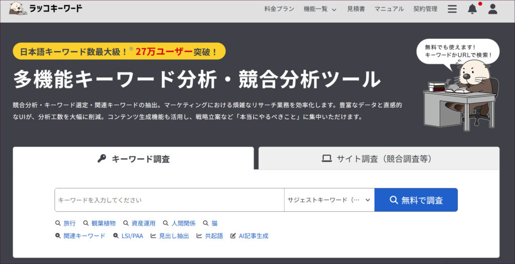 競合サイトの文字数は、無料ツールの「ラッコキーワード」を使うと簡単に調べられます。