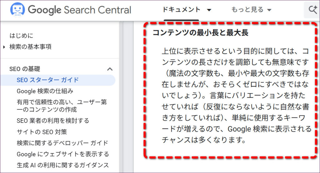 「でも、文字数はSEOに影響するって聞くけど…」と思うかもしれません。この点について、検索エンジンを開発しているGoogleは、「文字数は直接の検索順位決定要因ではない」と公式に見解を示しています。