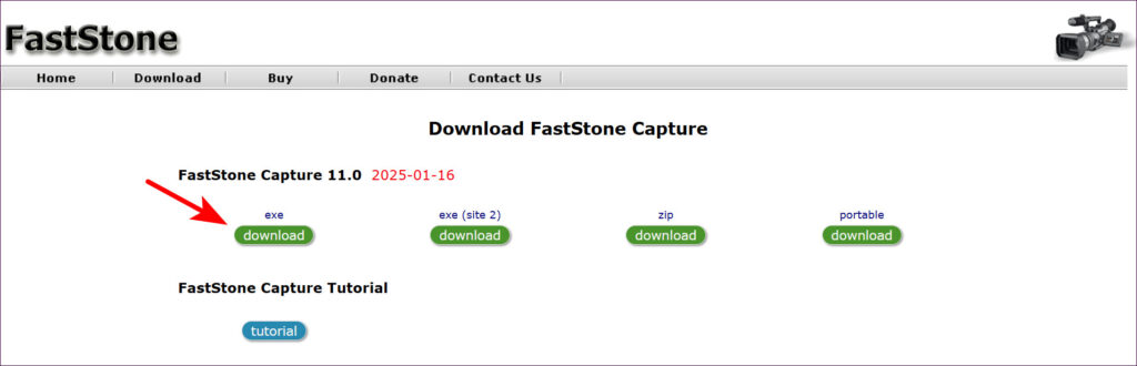 FastStone公式ページにアクセスして、ページ中央付近の「download」と書かれたボタンをクリックします。